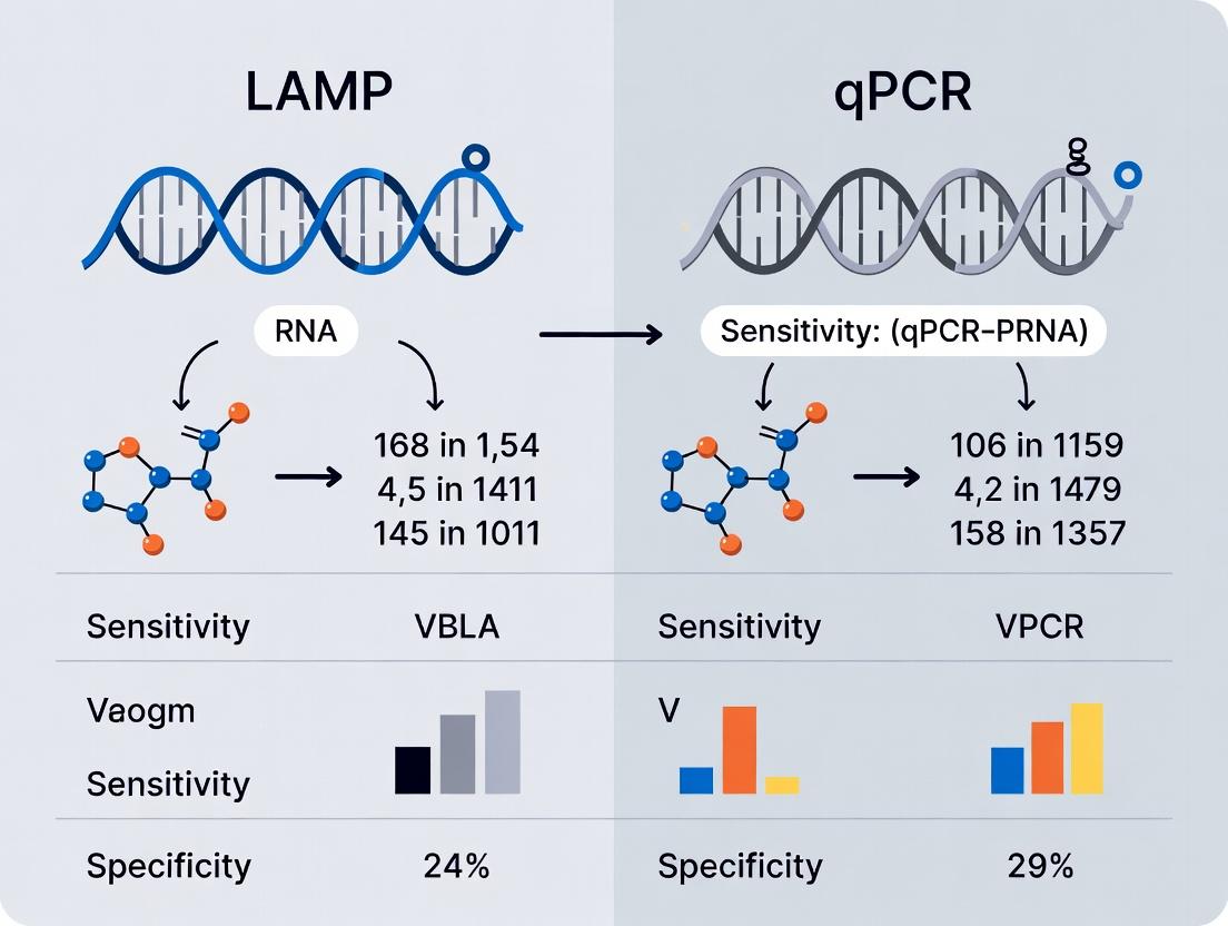 This technical review provides researchers, scientists, and drug development professionals with a current, data-driven comparison of Loop-Mediated Isothermal Amplification (LAMP) and quantitative Polymerase Chain Reaction (qPCR). We explore the foundational principles underpinning each method, detail their practical applications and workflows, address common troubleshooting and optimization strategies, and present a critical, evidence-based analysis of their comparative diagnostic performance in sensitivity and specificity. The article synthesizes findings to guide optimal assay selection for various research and clinical development scenarios.