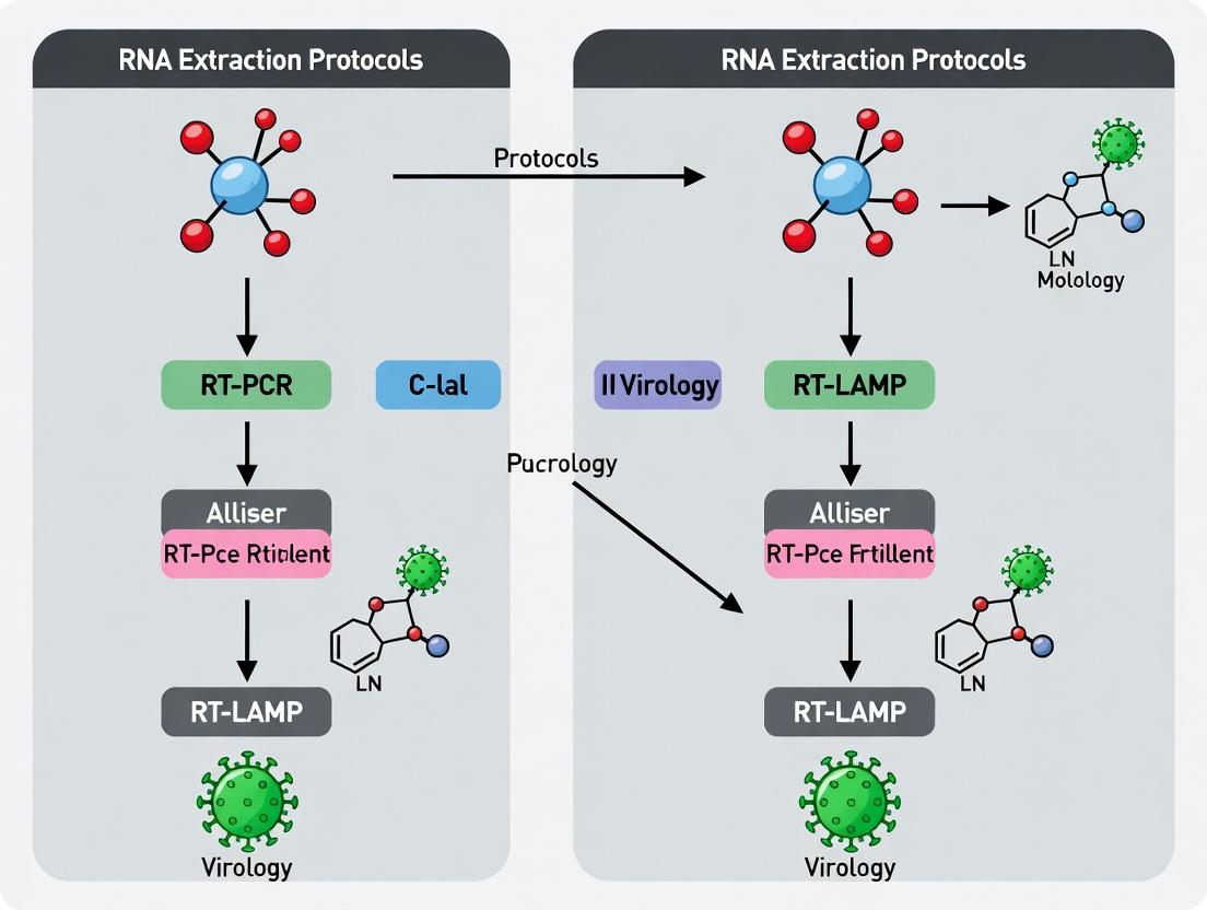This application note, framed within a broader thesis on RNA extraction protocols, investigates the direct correlation between the efficiency of viral RNA extraction and the resulting clinical sensitivity of two primary diagnostic techniques: Reverse Transcription Polymerase Chain Reaction (RT-PCR) and Reverse Transcription Loop-Mediated Isothermal Amplification (RT-LAMP). For researchers and drug development professionals, understanding this relationship is critical for optimizing diagnostic assay design, particularly for low viral load scenarios.